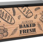 Home Huishouden Fixwood Broodtrommel met Houten Klep – Luxe Brooddoos van Kunststof en Hout – Stijlvol & Ruimtebesparend – Houdt Brood Langer Vers – Zwart/Hout Design